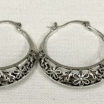 Brinco argola tamanho G detalhes de flores