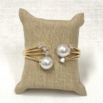 Bracelete modelo aberto no dourado 4 fios zircônia e pérola nas pontas
