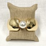 Bracelete grande e largo, modelo liso com uma perola no meio.