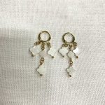 Brinco argola pequena com 3 fileiras pendurada com mini trevos de madrepérola.