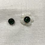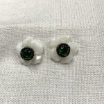 Brinco flor madrepérola removível com pedra verde esmeralda e zircônias negras em voltas.