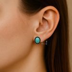 Brinco indiano pequeno oval com pedra turquesa no meio