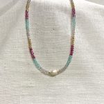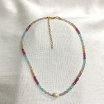 Choker no cristalzinho brilhante colorido com 1 pérola natural no meio.