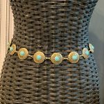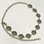 Cinto de metal estilo boho modelo redondo moeda no ouro velho com turquesa