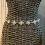 Cinto de metal estilo boho modelo trevo com turquesa resina na cor prata