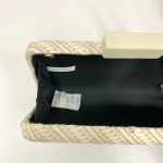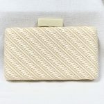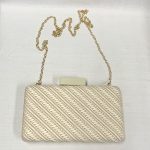 Bolsa clutch na cor off white com corrente de ombro na cor dourada, retirável