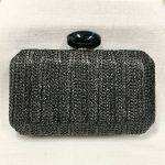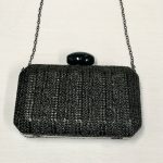 Bolsa clutch na cor preta com detalhes trançados no tecido e com corrente de ombro na cor preta, retirável