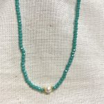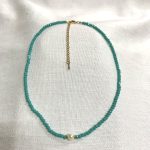 Colar no cristalzinho cor azul tiffany com pérola natural no meio.