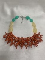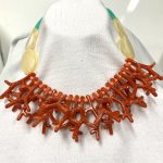 Colar curto de resina com 3 formatos, quadrado, oval e ramos de corais.