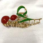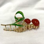 Piranha de cabelo no tamanho GG de cereja toda no metal, esmaltada em algumas partes.