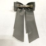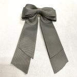 Presilha de cabelo laço duplo G de cetim gorgurão no cinza com 2 fita largona caindo.