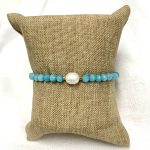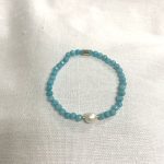Pulseira elástico de pedra ágata pequena no azul com pérola natural na frente.
