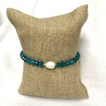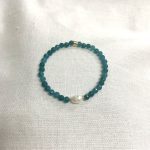 Pulseira elástico de pedras ágata pequena no verde com pérola natural na frente.