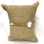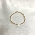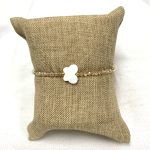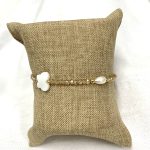 Pulseira elástico com cristalzinho no doce de leite, com pingente na madrepérola e 2 pérolas natural dos lado.