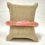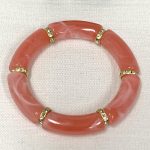 Pulseira resinas na cor rosa chiclete, mesclado de branco, elos com strass nos entremeios.