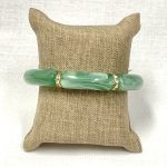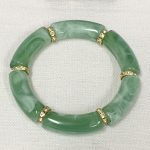 Pulseira resinas na cor verde menta, mesclado de branco, elos com strass nos entremeios.