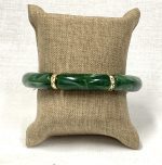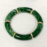 Pulseira resinas na cor verde bandeira, mesclado de branco, elos com strass nos entremeios.